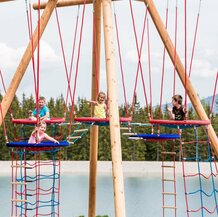 Slide, swing and playtrum, plus maybe a sandbox and a bench for the parents? ...