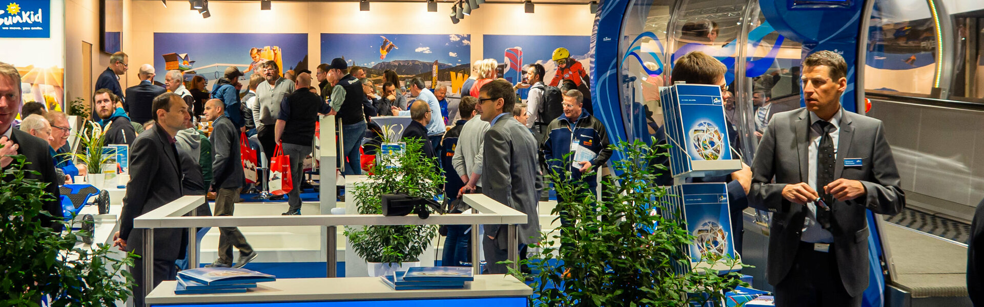 Am Hauptstand konnten die Besucher die neuesten Innovationen begutachten. Ein Zauberteppich mit individuell designter Galerie und einem speziellen Eingangsbogen inklusive Display führte zum Barbereich von Sunkid. Auch das neueste aus dem Hause Sunkid – der Mountain Coaster – war erstmals zu Gast auf der Interalpin. Mit der neuesten Technologie konnten die Besucher via VR-Brille in ein Kinderskiland eintauchen und dieses live erleben. Für die jüngsten Besucher gab es wieder die Möglichkeit mit der Holzkugelbahn zu spielen und sich auf der Holzschneekanone auszutoben.