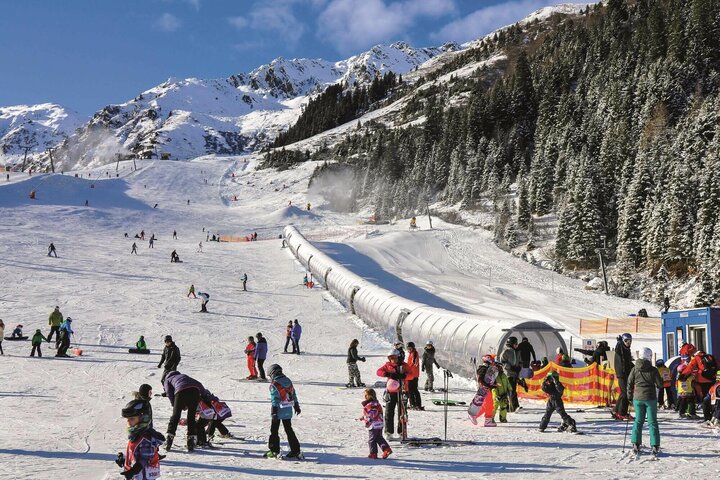 der multifunktionale Zauberteppich transportiert nicht nur Personen, sondern auch Rodeln, Monoskis, Tubes, Snowbikes und vieles mehr