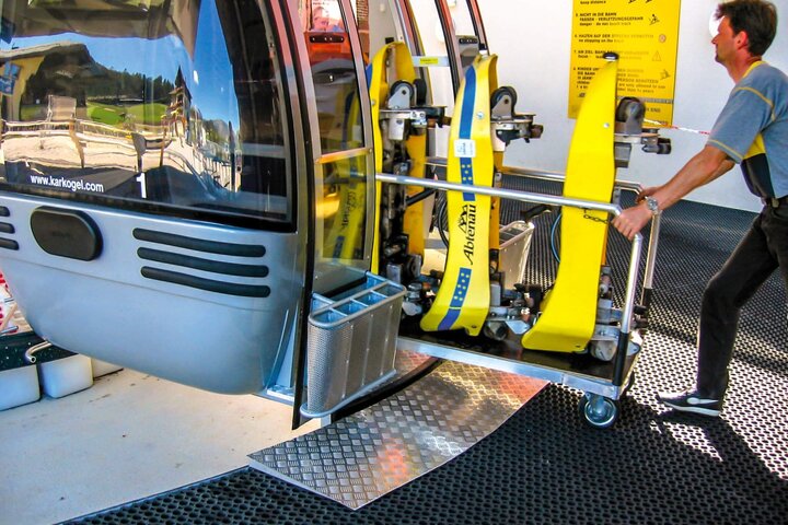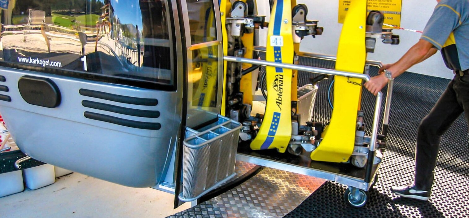 Durch den Einsatz spezieller Transportwägen, die auf den vorhandenen Kabinentyp angepasst werden, lassen spielend einfach bis zu 3 Rodeln pro Gondel auf einmal transportieren. Zudem besteht die Möglichkeit, die Rodeln außerhalb der Gondel zu befestigen, wodurch keine Beförderungskapazitäten verloren gehen.