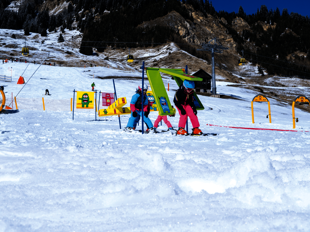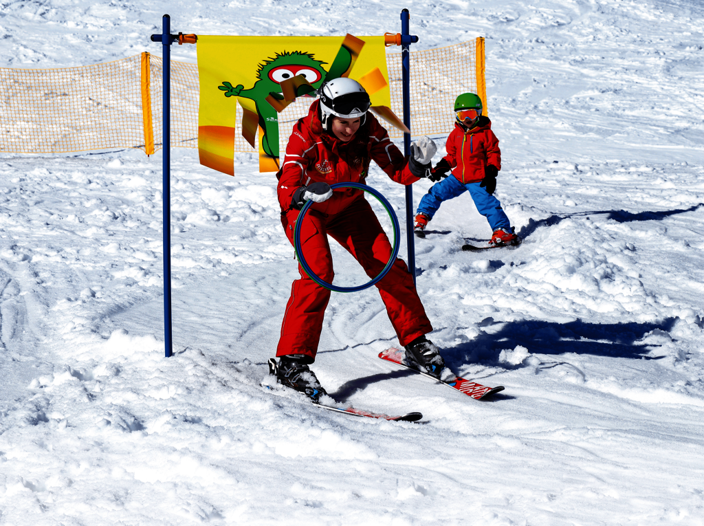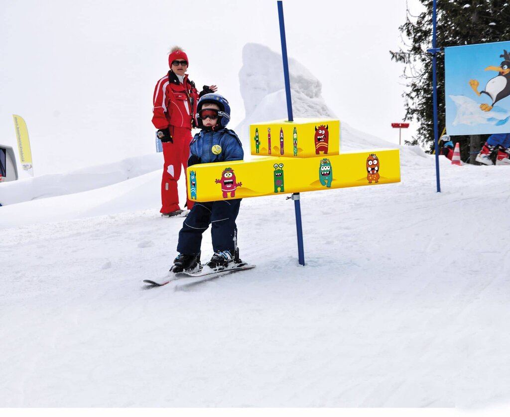 Ein Set - 7 Elemente – Skivergnügen garantiert. Unser Interaktiver Skikindergarten stellt einen Parcour der Superlative dar. Kinder müssen sich bücken, Hände abklatschen, ein Karussell zum Drehen bringen und vieles mehr.