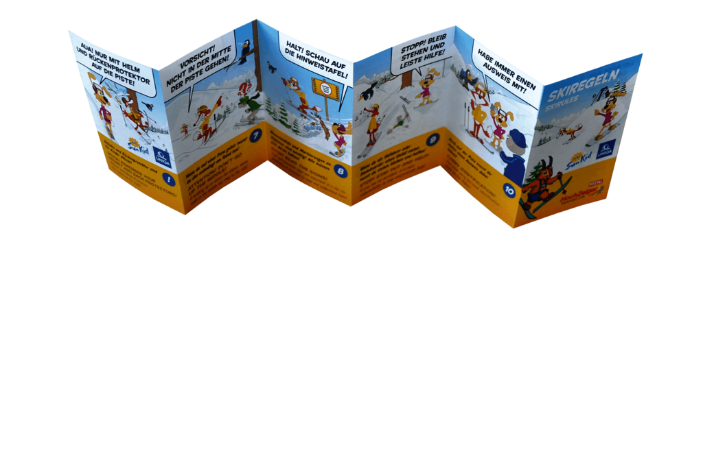 Unter dem Motto „Sicher mehr Spaß“ haben wir kindgerecht gestaltete Schilder, Informationsmaterial und interaktive Figuren entwickelt, um den Kindern spielerisch die Pistenregeln beizubringen. Für ein besseres Verständnis können die Produkte auch mit Speakern ausgestattet werden. Der Sound kann dabei durch Bewegung oder Knopfdruck ausgelöst werden.