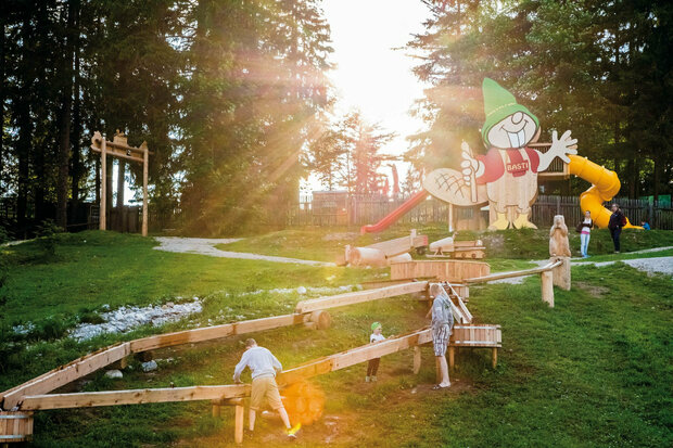 Mit dem Biberwasser errichteten wir auf der Mariazeller Bürgeralpe einen modernen, in die Natur eingebetteten Spielepark für Kinder. Zu den Attraktionen zählen u.a. ein Wasserspielbereich mit Floßregatta, Goldwaschanlage und Biberdomino sowie eine Riesenrutsche und die Kletteranlage „Adlerhorst“ mit Seilen, Hängeleitern und Kletternetzen in bis zu 3 Metern Höhe.