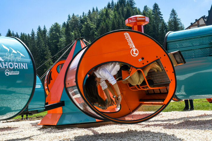Die Kabinen drehen sich im Kreis, rechts oder links - je nach Wahl des Bedieners. Die Passagiere können entscheiden, ob sie es gemächlich angehen oder Turbulenzen erleben möchten. Die Fahrgäste können am Steuerpult wählen, ob sie es gemütlich haben wollen oder ob sie mit einem einfachen Knopfdruck Purzelbäume schlagen, vorwärts, rückwärts oder umkehren wollen - was immer sich am besten anfühlt. Für diejenigen, die eine wilde Fahrt wollen, ist der Himmel die Grenze. Und diejenigen, die sich entspannen wollen, können sich dafür entscheiden, einfach nichts zu tun. Dann gleitet die zweisitzige Kabine einfach sanft dahin.
