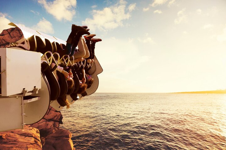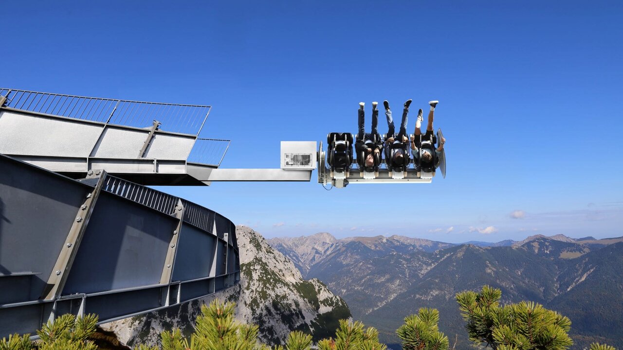 Bis zu vier Personen nehmen von der Plattform aus kommend in den Sitzeinheiten Platz. Langsam senken sich die Sicherheitsbügel, sichern die Passagiere…und los geht‘s. Der Ausleger schwenkt aus der Plattform und während dieser Bewegung beginnt der Sitzbalken ganz langsam wahlweise eine Drehung um 360° nach vorne oder hinten. Der Puls beginnt zu rasen und sobald die Passagiere aus großer Höhe kopfüber den Boden unter sich sehen schießt das Adrenalin ungebremst durch den Körper!