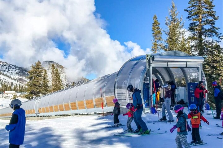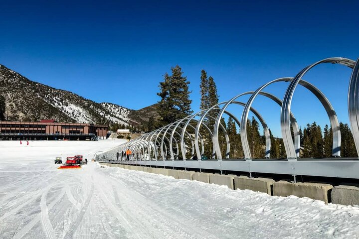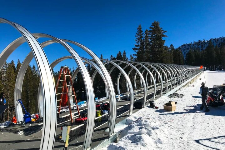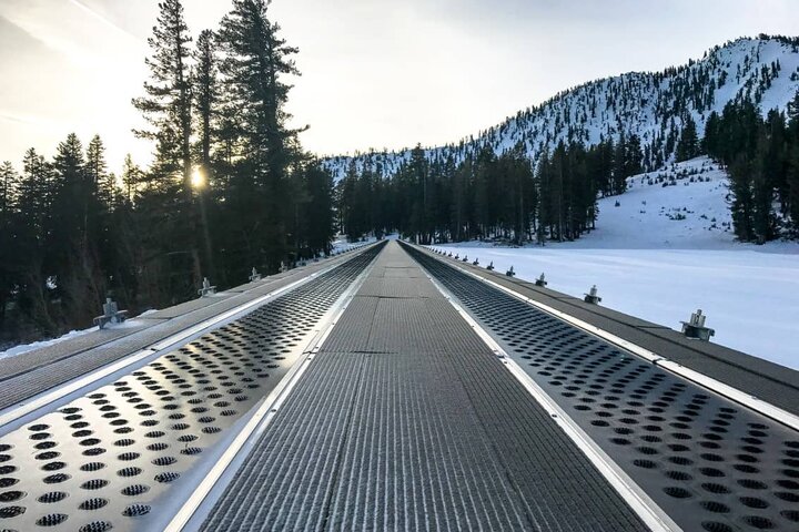 Mt. Rose Ski Tahoe (USA): Durch die Installation des ersten dualen Personenförderbandes in Nordamerika kann von nun an der Andrang im Anfängergelände am Mt. Rose problemlos bewältigt werden. Die insgesamt 288 Meter langen Zauberteppiche werden von jeweils einem 22 KW Motor angetrieben und können so mehr als 3.500 Personen pro Stunde transportieren. Die Gurtbreite von 750 mm sowie die Duplex Evolus Galerie sorgen für zusätzlichen Komfort der Benutzer. Außerhalb der Betriebszeiten schützen elektrische Rolltore den Ein- und Ausstiegsbereich vor Wind und Wetter.