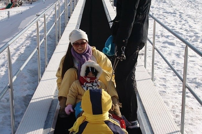 Das Skiresort in Sungwoo (Südkorea) realisierte ein außergewöhnliches und atemberaubendes Projekt. Neben neuen Pisten für Skianfänger und Rodler wurden durch die Sunkid Partner Meingast/Neveplast zwei Tubingbahnen für den Ganzjahresbetrieb mit 450m und 170m Länge errichtet. Um den Aufstieg für Skifahrer, Rodler und Tuber zu erleichtern installierte Sunkid in Sungwoo drei Zauberteppiche mit einer Gesamtlänge von 564m!