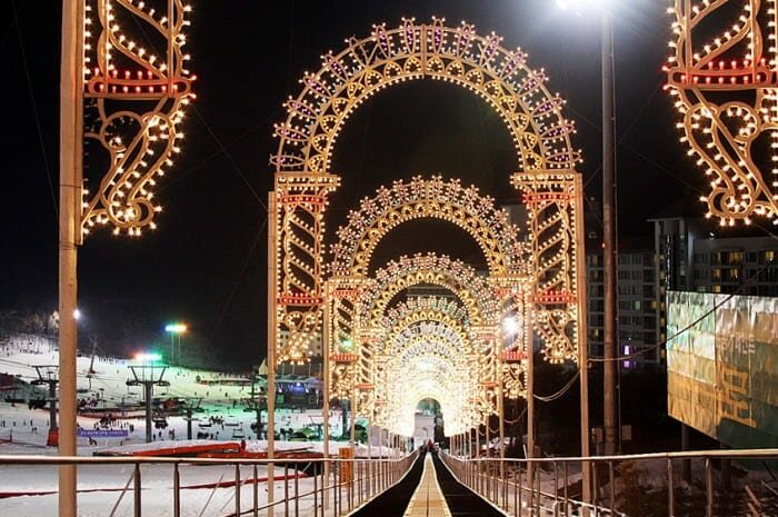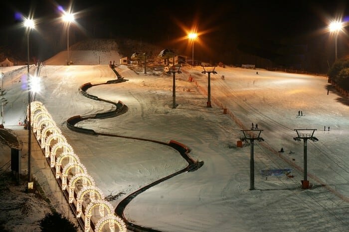 Aufgrund der zahlreichen Freizeitmöglichkeiten, der modernen Sunkid Aufstiegshilfen und durch eindrucksvolle Lichteffekte wird der Besuch im Hyundai Skiresort in Sungwoo zu einem einzigartigen Erlebnis.