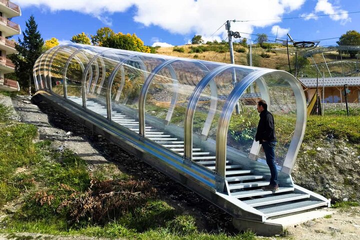 Dieses System lässt sich durch die Modulbauweise an beliebige Längen und Steigungen (Höhenunterschiede) anpassen. Auch Speziallösungen wie beispielsweise Übergänge von schräg auf gerade (Steigung-Ebene) lassen sich durch das Baukastensystem optisch und technisch einwandfrei umsetzen.