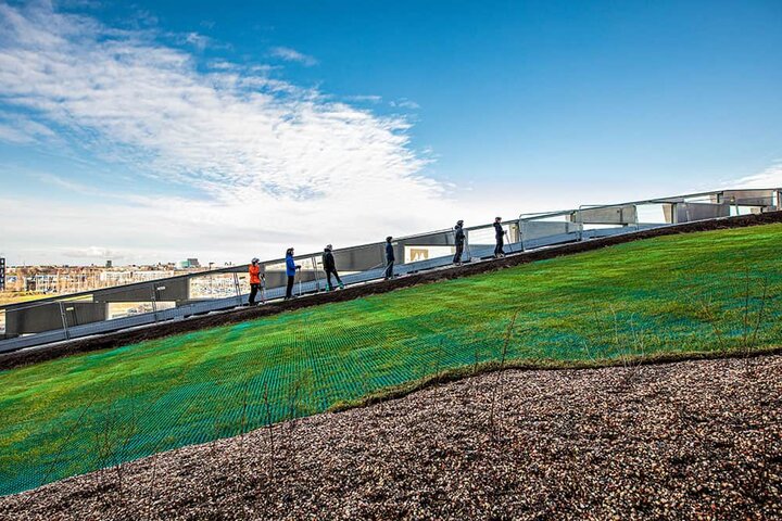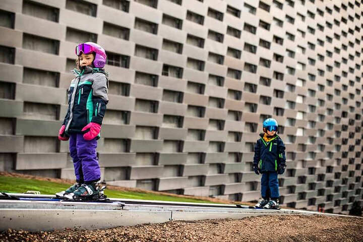 Kürzlich wurde in Dänemark die wohl außergewöhnlichsten Skipiste der Welt eröffnet: der CopenHill. Damit besitzt Dänemark nun eine Sportanlage, die ihresgleichen sucht. Auf dem Dach der neuen Müllverbrennungsanlage Amager Bakke in Kopenhagen wurden ein einmaliges Naherholungsgebiet und ein Sportzentrum geschaffen, das unter anderem ganzjährigen Skibetrieb ermöglicht. Drei Sunkid Zauberteppiche (36m, 51m und 96m) sowie ein Tellerlift befördern dabei die mehr als 300.000 jährlich erwarteten Besucher auf 85 Meter Höhe. Das Tiroler Unternehmen Sunkid lieferte aber nicht nur die Zauberteppich Förderbänder, sondern wirkte auch maßgeblich bei der Planung der Förderlösungen sowie der Skipiste mit. Auch der Streckenbelag unterscheidet sich deutlich vom gewohnten Weiß heimischer Skipisten. Auf einem speziell entwickelten, grünen Kunststoffbelag der Sunkid Partnerfirma Neveplast ist ein ganzjähriger Skibetrieb möglich. Vergleichbar ist eine der größten ganzjährig befahrbaren Skipisten Europas, die Wunderwiese in Puchberg in Österreich.