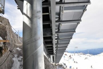 Doch damit ist seit diesem Sommer Schluss! Den an Spitzentagen mehr als 3000 Besuchern am Gletscherplateau steht nun ein Sunkid-Zauberteppich mit Galerie als Aufstiegshilfe für die Rückkehr zur Bergstation zur Verfügung. Die stufenlos einstellbare Fahrgeschwindigkeit von 0,2 - 0,6 m/s erlaubt den Passagieren ein entspanntes Hochfahren bis quasi „direkt in den Gastgarten“ des Bergrestaurants.