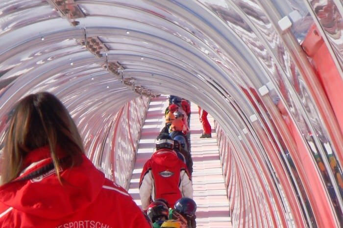 Insbesondere lobt er die zuverlässige Technik. "Wir haben in Spitzenzeiten bis zu 500 Skischüler im Gelände und müssen uns auf die Anlagen in Punkto Verfügbarkeit und Sicherheit absolut verlassen können", so Berto Tanner. "Zunächst hatte ich noch ein wenig Bauchweh als wir mit diesem Projekt Starteten, aber nach den ersten Betriebstagen war ich davon überzeugt, dass dies die richtige Entscheidung war und wir auf die richtigen Partner gesetzt hatten" Es lässt sich feststellen, dass mit dem neuen Förderband und der Galerie, trotz des hohen Gästeaufkommens eine ruhige und klare Beförderungsstruktur eingezogen hat, welche der Qualität und dem Ablauf des Skiunterrichts sehr zugute kommt", führt der Skischulleiter weiter aus.