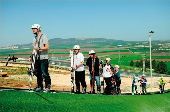 Zudem bietet die Anlage am Berg Gilboa die Möglichkeit dieses Hobby nun ganzjährig ausüben zu können, da die schneereichen Tage am Berg Hermon begrenzt sind und nur wenige israelische Skifahrer sich einen Urlaub im Ausland leisten. Die hohen Temperaturen bringen es mit sich, dass die Skilehrer den Overall gegen kurze Hosen tauschen. Und anstatt des beim Skifahren gewohnten Bergpanoramas blickt man während einer Abfahrt auf die Oliven- und Zypressenbäume des Charod Tales. Der darauffolgende Aufstieg erfolgt aber wieder wie in vielen Skigebieten weltweit: Nämlich mittels zweier Sunkid-Zauberteppiche mit einer Länge von 69 und 129 Metern. Die verwendete Rough-Top Oberfläche sorgt in Zusammenhang mit dem 600mm breiten Fördergurt für entsprechend sicheren Halt und ermöglicht auch Fußgängern mit ihren Schibobs einen sicheren Transport nach oben. Da es für viele der Passagiere auch der erste Kontakt mit dem Skifahren überhaupt ist, begrüßen diese eine angenehme und stressfreie Liftfahrt mit dem Sunkid-Zauberteppich natürlich umso mehr – und das eint wohl alle Fahranfänger, unabhängig ob unter Israels Sonne oder in einem Skigebiet der Alpen.