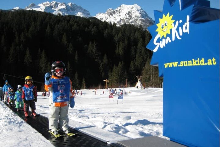 Als Aufstiegshilfe für den Kinder- und Anfängerbereich entschloss sich die Skischule für zwei Sunkid Zauberteppiche. Ein 15 m und ein 66 m langes Förderband stehen den Kindern für die Anfänge zur Verfügung. Das längere Förderband trennt den Snowboardbereich vom Kindergelände, aber gleichzeitig können dieselben Gruppen mit einer Aufstiegshilfe nach oben befördert werden. Die einfache Anwendung und die Multifunktionalität waren hier ausschlaggebend für diese Lösung.