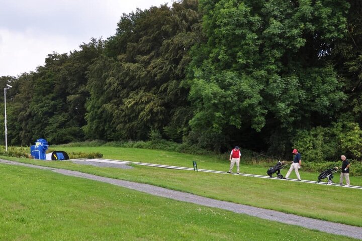 Die Abschläge 2 bis 9 liegen auf einer Hochebene, die einen wunderbaren Ausblick ins Bergische Land gewährt. Bis dorthin ist das erste Loch jedoch recht sportlich bergauf zu spielen. Insgesamt sind so bis zum zweiten Abschlag fast 60 Höhenmeter zu überwinden – welche jedoch Dank des Förderbandes von Sunkid auch für die Spieler ohne Golfcart nun leicht zu meistern sind. Der Höhenunterschied zwischen den ersten beiden Abschlägen entspricht immerhin der Höhe eines fast 20-stöckigen Hauses. Dazu Clubmanager Werner Witte: „Früher war es ohne Golfcart auch für sehr sportliche Spieler schwierig, den optimalen Spielrhythmus zu bewahren. Das Förderband ist die ideale Lösung für Sportler, die auf das Golfcart verzichten wollen.“ Mit seinem sehr leisen und effizienten 15kW-Motor transportiert das Förderband die Golfer somit zuverlässig und schnell über durchschnittlich 20% Steigung nach oben.