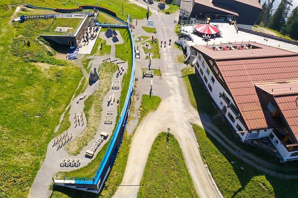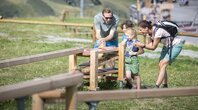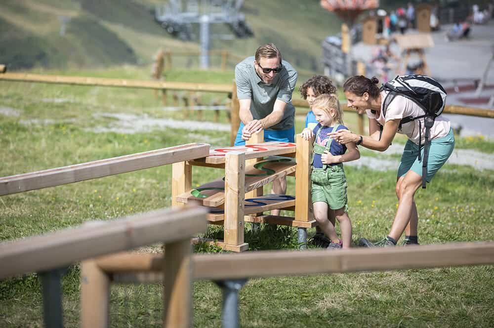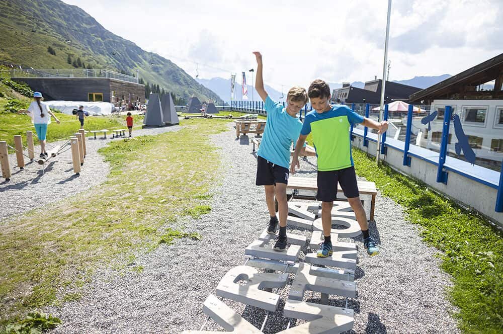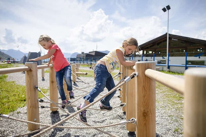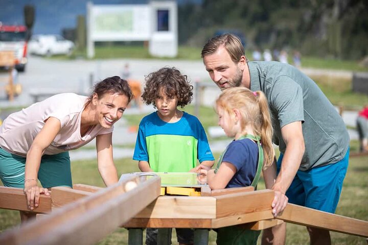 Vom Hauptort Schruns im Montafon führt die Hochjoch Bahn hinauf Richtung Kapellalpe. Auf 1.850 Metern angekommen, können Klettersteige erklommen, Seebiotope erforscht und nach einer Hüttenwanderung die Kulinarik genossen werden. Mit dem vor kurzem eröffneten Abenteuerberg Hochjoch, ist die Destination jedoch um ein besonderes Juwel reicher. Schon beim Austeigen aus der Gondel beginnen Kinderaugen zu funkeln, wartet doch eine vielfältig gestaltete Erlebniswelt auf die kleinen Abenteurer. Der von Sunkid errichtete Motorikparkour nimmt dabei eine zentrale Rolle ein. Hier kann gekraxelt und balanciert werden, was das Zeug hält. Wackelsteine, Baumstämme und Trittbalken fördern das Gleichgewichtsgefühl und Spielgeräte mit Seilen und Netzen bieten Kletterspaß für Jung und Alt. Besonders spannend wird es aber dann, wenn der Parkour mit Geschwistern oder Freunden gleichzeitig bewältigt wird. Die einzelnen Stationen wurden nämlich bewusst so gestaltet, dass sie gleichzeitig von mehreren Kindern genutzt werden können. Vom Motorikparkour aus führt der Naturkräftepfad zum Seebiotop. Dabei vermitteln verschiedene Stationen spielerisch und nachhaltig Wissen rund um die Elemente in den Bergen.