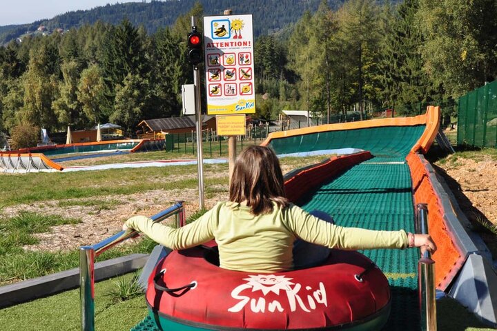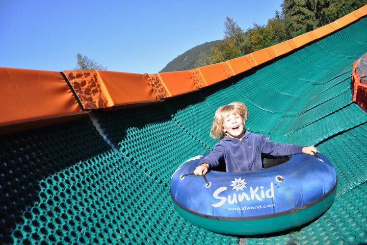 Auf der über 120m langen, mit 3 Steilkurven versehenen Strecke kommen die aus dem Winter bekannten Snow-Tubes zum Einsatz. Diese entfalten auf der ca. zwei Meter breiten Spezialunterlage Gleiteigenschaften wie auf Schnee. "Und das Gefälle hier bei uns", sagt der Silberbergbahn-Betriebsleiter Michael Hagengruber, "ist dafür optimal". Zurück nach oben geht's über den Sunkid Zauberteppich, der nicht nur den Jüngsten im Winter aus der Skischule bekannt ist.
