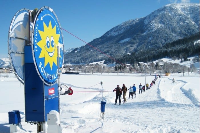 Ein Sunkid Zauberteppich bringt die Gäste durch eine Unterführung nach oben zum 224 langen Sonnenlift. Mit einer Kapazität von 900 Personen pro Stunde ist damit die Anbindung zur Talstation optimal gelöst. Die Besonderheit dabei ist, dass dieser Sunkid Swisscord Lift erstmals nur mit Energie aus Photovoltaikzellen betrieben wird.