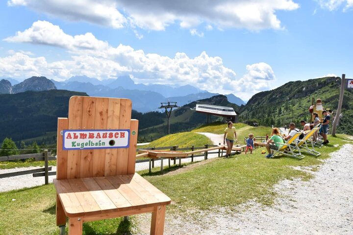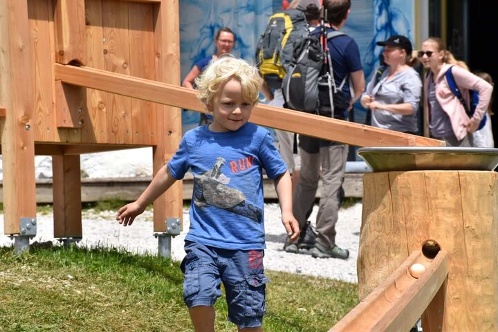 Direkt bei der Bergstation der Gartnerkofelbahn startet das Almrausch-Kugelabenteuer: Die Holzkugelbahn mit rund zehn verschiedenen Stationen erstreckt sich über eine Länge von circa 60 Metern. Die Holzkugel kann man um zwei Euro bei der Bergstation abholen und dann losstarten: Bei den einzelnen Stationen überwindet die Kugel Labyrinthe, Kuhglocken, Trichter und viele andere Hindernisse. Durch die abwechslungsreiche Strecke entstehen spannende Geräusche und Töne. Die Kinder begleiten ihre Kugel vom Start bis zum Ziel – das sorgt für jede Menge Spaß und Action. Deshalb gilt die Kugelbahn „Almrausch“ bei Klein und Groß als die Attraktion schlechthin.