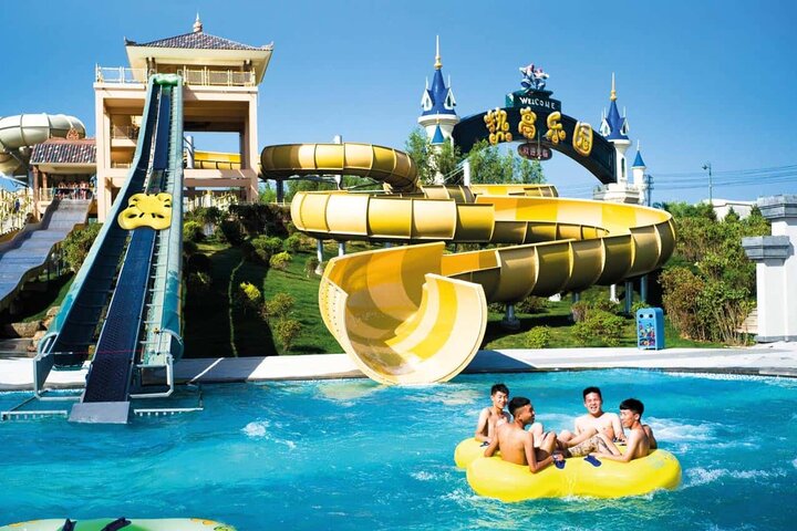 Für die Rutschenanlage von Wiegand-Maelzer im Hot Go Park in Fushun (China) installierte Sunkid zwei Förderbänder mit einer Gesamtlänge von rund 110 Metern. Eines der beiden Förderbänder weist einen leichten „Knick“ im Aufstiegsbereich auf, um die ideale Streckenführung zu ermöglichen.