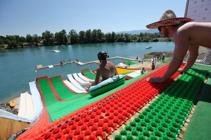 Sommer ist Sonne, Spass und Waterjump! In Baudreix (Pyrenäen) hat ein Wasser-Sprungpark mit insgesamt 16 Pisten eröffnet. Mit den kundenindividuell gestalteten Tubes geht es mit bis zu über 5 Meter hohen Sprüngen ins kühle Nass.