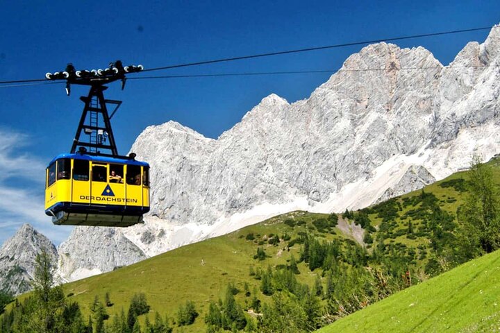 Eine der beiden Gondeln, die 44 Jahre lang Millionen von Besucher auf den Dachsteingletscher befördert hatte, steht nun im Hopsiland (Planai/Schladming)