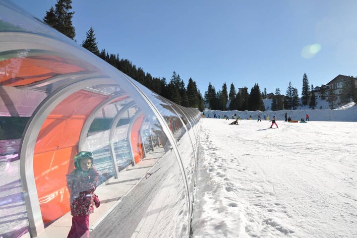 Nur 150 km von Wien entfernt präsentiert sich das Skigebiet Göstling-Hochkar als größtes und schneesicherstes Skigebiet der Österreichischen Voralpen. Durch die Nähe zur Landeshauptstadt beginnen am Hochkar viele der Einwohner Wiens Ihre ersten Schritte im Schnee. Um diesen Skianfängern ein ideales Umfeld zu bieten wurde nun das Kinderland bzw. Anfängerareal neu errichtet und adaptiert. Wo vorher ein Schlepplift die Anfänger nach oben beförderte, stehen nun ein 93 Meter langer Sunkid Zauberteppich mit einer Gurtbreite von 750mm sowie ein weiterer mit 39 Meter Länge und 600mm Gurtbreite. Überdacht sind beide mit der Galerie EVOLUS.