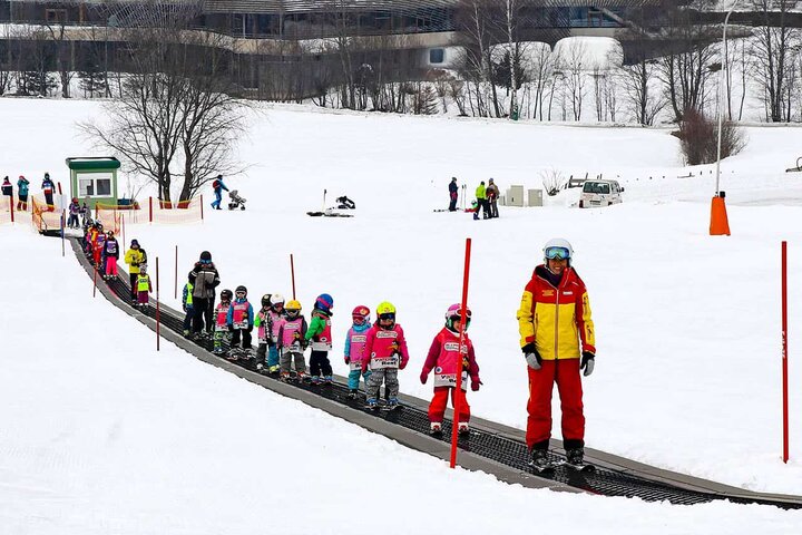 Durch das flache Gefälle dient er dort als ideale Aufstiegshilfe für alle Anfänger des Wintersports