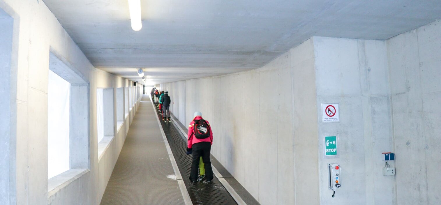 Die neue Förderbandlösung wurde in einem Tunnel installiert, welcher unterirdisch die Skipiste quert. Somit bietet diese Lösung gleich mehrere Vorteile für Gäste und Betreiber. Die Gäste können schneller und komfortabler nach oben transportiert werden. Die Betreiber erlangen eine höhere Personenbeförderungskapazität und einen geringeren Wartungsaufwand, da dass die alte Lifttrasse nicht mehr präpariert werden muss. Außerdem trennt der Tunnel die herunterfahrenden Skifahrer, von denen die nach oben befördert werden – somit wird die Sicherheit für beide Seitenerhöht.