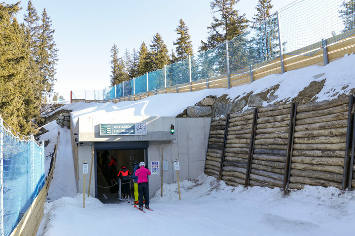Mit der Modernisierung des Kreuzeckzubringers dürfen sich die Gäste des Skigebietes Garmisch-Classic über noch mehr Komfort freuen: Ein alter Seillift mit einer niedrigen Seilführung, welcher Skifahrer aus dem Skigebietsbereich Osterfelderkopf hin zur Bergstation Kreuzeckbahn zurückgebracht hat, wurde durch ein modernes Förderband in einem Skitunnel ersetzt. Gäste können nun bequem die letzten Höhenmeter in Richtung Kreuzeck per Förderband überwinden.