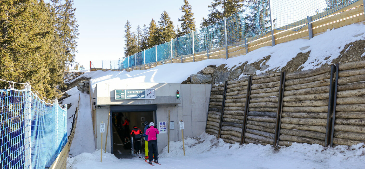 Zum Winter 2021/22 wurde der Kreuzeckzubringer neu errichtet und der alte Seillift damit ersetzt. Das neue, sichere Konzept – ein Förderband in einem Tunnel - ist nicht nur besonders, weil es unterirdisch der Skipiste verläuft, sondern auch weil sie erstmals die indirekte Beaufsichtigung eines Personentransportförderbandes in Bayern ermöglicht