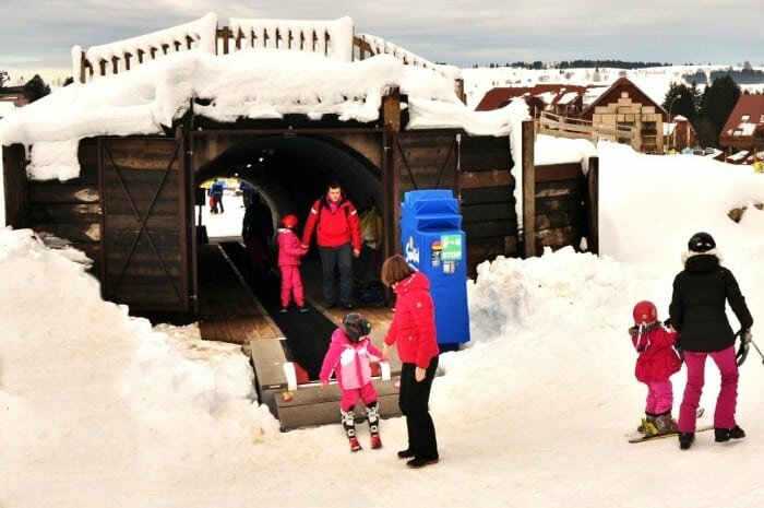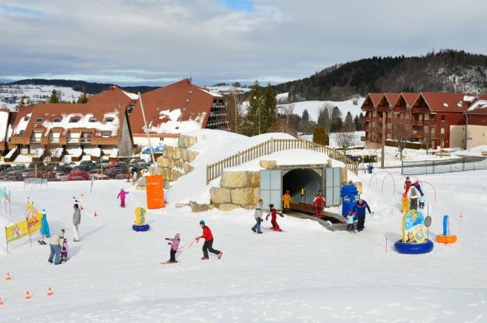 Im Juragebirge, im Osten Frankreichs, in direkter Nähe zur Schweiz befindet sich das Skigebiet Métabief, das sein Angebot speziell auf Familien ausgerichtet hat. Eines dieser Angebote richtet sich an die Jüngsten bis zum Alter von ca. 10 Jahren, für die ein ganz spezielles Skikinderland errichtet wurde. Der als Jura Kid Park bezeichnete Bereich liegt am Rand des Skigebietes, ganz ohne „Durchzugsverkehr“ und ist somit etwas beruhigt. Jedoch war das Gelände dort für ein Skikinderland ursprünglich relativ flach. So kam man auf die Idee das Gefälle durch zwei Erdhügel zu begünstigen. Nun bietet das Gelände verschiedene Hangneigungen und hält eine – eigentlich zwei – Attraktion(en) für die kleinen Gäste bereit. Es sind zwei Sunkid Zauberteppiche mit jeweils einer Länge von 27 Metern, die nicht wie sonst üblich durch eine Galerie geschützt sind, sondern durch Tunnels, die eben durch diese Erdhügel durchführen. Die Tunnels selbst wurden von einer lokalen Baufirma errichtet, die Holztrottoire und Türen wurden samt den beiden Zauberteppichen von Sunkid France geliefert und installiert.