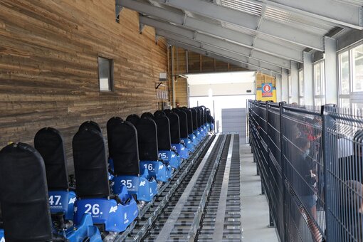 Langsam wird die Gondel nach oben gezogen bevor die Fahrt losgeht. Nach dem Auskuppeln beschleunigt das Fahrzeug auf mehr als 35 km/h und drückt den Benutzer in der ersten Pendelbewegung mit…