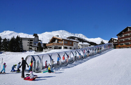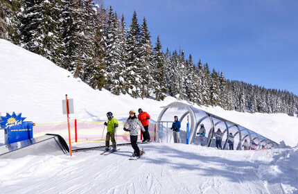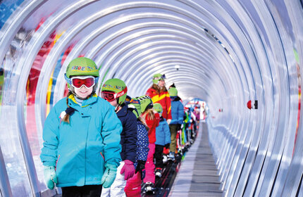 Sunkid entwickelt zusammen mit der Skidimension Serfaus-Fiss-Ladis das Erste voll thematisierte Förderband. (Märchenexpress Kinderland Fiss)