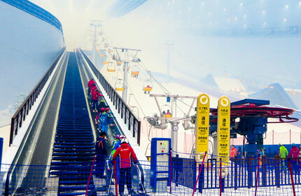 Montage von Förderbändern für Snow Domes in Dubai und Großbritannien mit spezieller automatischer Enteisungs- und Schneereinigungsfunktion.